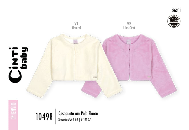 Perfeito para um aconchego de inverno com toque de elegância. Confeccionado em Pelo Fleece, este casaco oferece uma textura extremamente macia e aveludada, proporcionando um calor delicioso e o máximo de conforto para a pele da sua menina. Com comprimento médio, seu design de corte curto e acinturado é ideal para ser usado como terceira peça, sem roubar a atenção da roupa por baixo. O fechamento sutil e elegante é feito por botão Cinti escondido com aselha e elástico roliço, mantendo a frente limpa e sofisticada. O forro interno no corpo garante ainda mais conforto térmico. É uma peça Edição Limitada, essencial para ocasiões especiais, festas e para aquecer com muito charme sobre vestidos ou blusas mais finas.