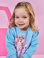 A estampa sublimada central traz a adorável Princesa Cinti junto a um amiguinho coelhinho, com detalhes em strass que iluminam a peça. Para facilitar ao vestir, o decote conta com abertura com 2 botões de pressão. A barra da parte do blusão e os punhos são talhados em Moletom, assegurando um ajuste confortável.