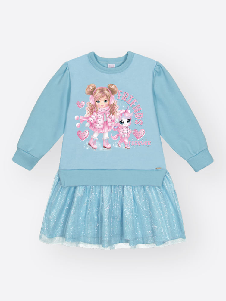 O Vestido Infantil em Moletom Felpado e Tule Fóil é o mix perfeito entre o conforto quentinho e o glamour das princesas.O blusão é confeccionada em Moletom Felpado, garantindo máximo aconchego e aquecimento para o corpo. A saia, por sua vez, é feita em Meia Malha e sobreposta com um delicado Tule Fóil, que adiciona um brilho encantador e volume rodado.