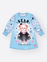 A estampa sublimada de fundo é coberta por um padrão de estrelas cadentes e a estampa central traz a frase ""B.E.A.R. friend"", destacando um ursinho fashion vestindo uma jaqueta e saia de tule. O toque de glamour fica por conta do strass, que ilumina a peça, e da etiqueta glitter na barra.
