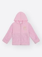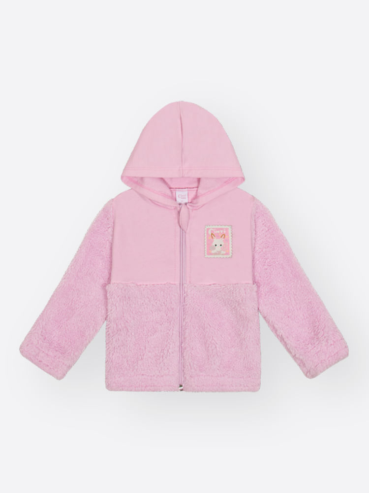 Jaqueta com Capuz: Confeccionada em Moletom Felpado com mangas, e com recorte e mangas em Pelo Carneiro, ela proporciona um toque extremamente macio e aconchegante. Possui zíper com proteção e um ajuste confortável na barra e punhos com elástico rebatido. A jaqueta é finalizada com uma charmosa etiqueta coelho bordada no peito.
