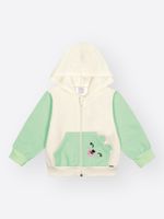 Jaqueta com Capuz: A jaqueta é bicolor, com o corpo e as mangas em cores contrastantes. Possui zíper nylon com proteção e um ajuste confortável na barra e punhos com punho talhado. O destaque fofo é o bolso canguru com orelhas 3D e um bordado de ursinho aplicado, que dão um charme extra. A jaqueta também possui uma plaquinha de metal prata.