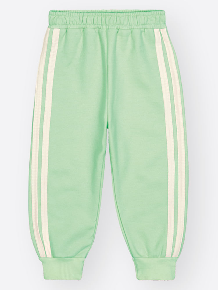Calça: A calça de moletom é moderna e confortável, com cós colocado com elástico e punhos talhados. O detalhe esportivo fica por conta dos galões laterais contrastantes, que alongam a silhueta.