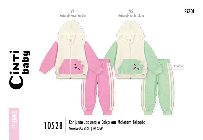 O Conjunto Jaqueta e Calça é um conjunto esportivo e super fofo, perfeito para os dias mais frescos com muito estilo e conforto. O conjunto é confeccionado em Moletom P.A Felpado, garantindo um toque macio e aquecimento ideal.