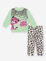 "O Conjunto Blusão e Calça Legging é a escolha ideal para um inverno divertido, quentinho e cheio de estilo animal print para sua pequena. O conjunto combina o conforto do moletom com a flexibilidade da legging, ambos felpados.