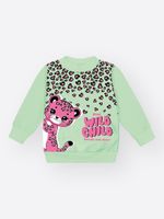 A estampa central traz uma oncinha rosa super fofa com a escrita ""WILD CHILD"", e é realçada por uma estampa puff que cria um efeito 3D.