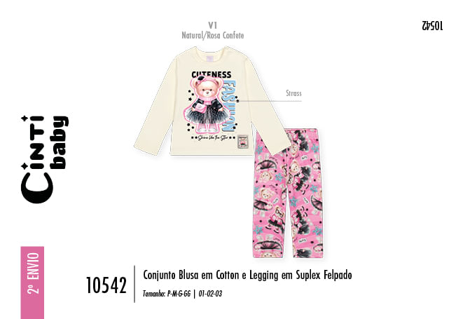 Legging: A calça é feita em Suplex Felpado, garantindo elasticidade, toque suave e quentinho. Possui cós elástico rebatido, oferecendo um ajuste seguro.