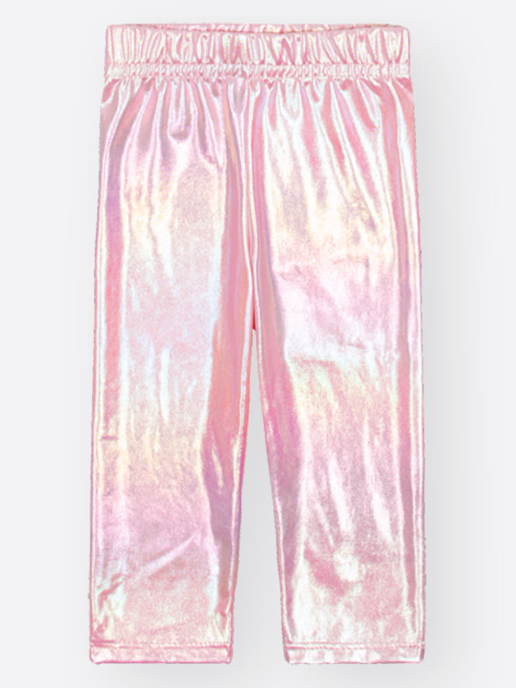 Legging: A calça é a peça de glamour do conjunto, feita em Malha Fóil Holográfica, que garante um efeito metalizado e iridescente. Possui cós elástico rebatido, oferecendo um ajuste seguro e confortável.
