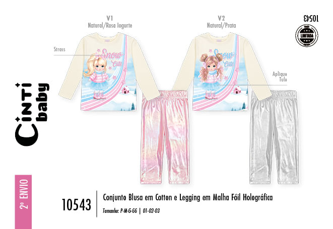 Este conjunto é perfeito para criar um look completo, aconchegante e cheio de brilho para a sua bebê."