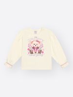 A estampa sublimada central apresenta uma ursinha com coração e flores com a escrita ""Find a little luxury everyday"", e é realçada por detalhes em strass, adicionando um brilho sutil.
