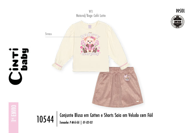 Este conjunto é ideal para criar um visual completo, confortável e cheio de elegância casual para a sua bebê."