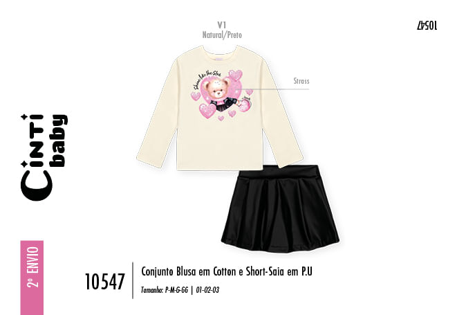 "O Conjunto Blusa e Short-Saia é a união perfeita de conforto, estilo e um toque rocker charmoso, ideal para criar um visual moderno e aconchegante para a sua pequena.