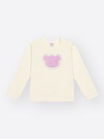 O destaque é a aplicação central em Fleece no formato de um coração, que é bordado e adornado com strass, adicionando textura, conforto e um brilho delicado.
