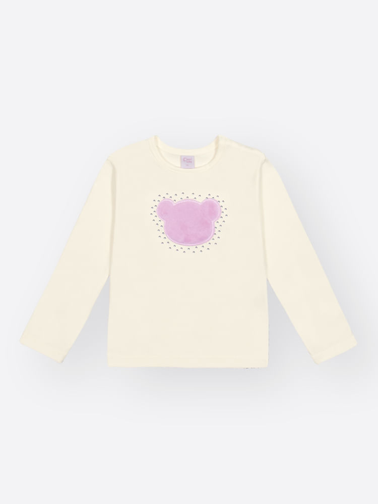Blusa: Confeccionada em Cotton, a blusa de mangas longas oferece um toque suave. Para facilitar ao vestir, possui abertura com botão de pressão no decote.