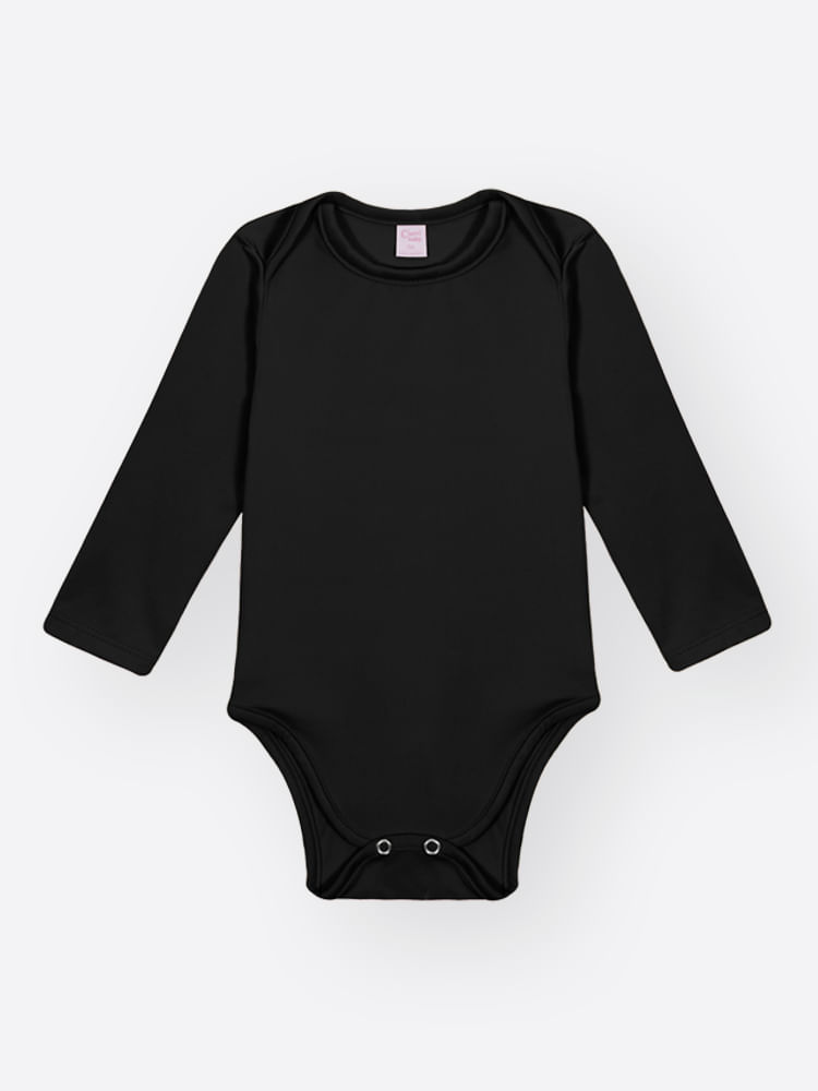 Possui um design clássico e funcional, com decote redondo e acabamento em bainha nas mangas. A peça conta com abertura com 2 botões de pressão na parte inferior, facilitando a troca de fraldas e garantindo um ajuste seguro.