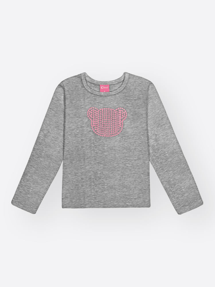 Tamanho:Blusa Cotton Menina Ursinho Bordado Mundo Cinti MESCLA CLARO 02
