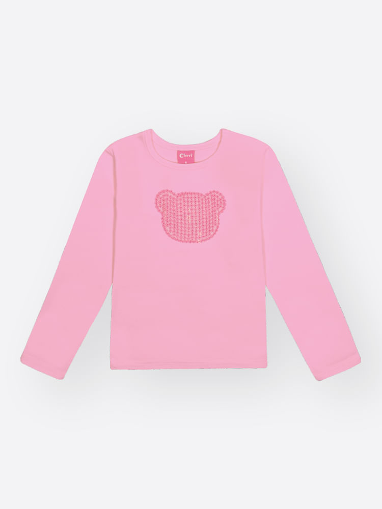 Tamanho:Blusa Cotton Menina Ursinho Bordado Mundo Cinti ROSA IOGURTE 02