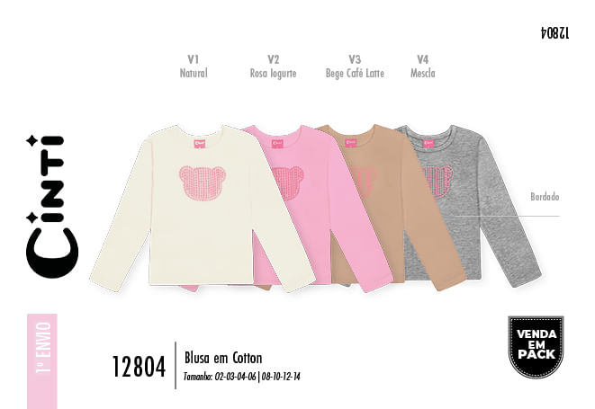 "A Blusa em Cotton da Cinti é a definição de conforto e estilo essencial para o dia a dia das meninas. Confeccionada em tecido de algodão macio, esta blusa de manga longa oferece a respirabilidade e a suavidade necessárias para acompanhar o ritmo das crianças em qualquer estação. O grande charme da peça fica por conta do bordado em paetê central, que desenha com brilho a silhueta de uma ursinha, transformando um item básico em uma peça lúdica e cheia de personalidade. Com acabamento cuidadoso em friso no decote e bainha reforçada, ela foi projetada para garantir durabilidade e um ajuste perfeito em diversos tamanhos, do 02 ao 14. Sendo um item versátil da moda infantil, esta blusa é ideal para quem busca praticidade, especialmente por estar disponível em formato de venda em pack, facilitando a renovação do guarda-roupa básico. Para um visual de passeio encantador, combine-a com uma saia de sarja e sapatilhas; para a rotina escolar ou momentos de lazer, ela harmoniza perfeitamente com calças jeans ou leggings coloridas. É a escolha certeira para compor looks de meia-estação que unem o toque clássico do cotton com o brilho divertido que as pequenas amam."