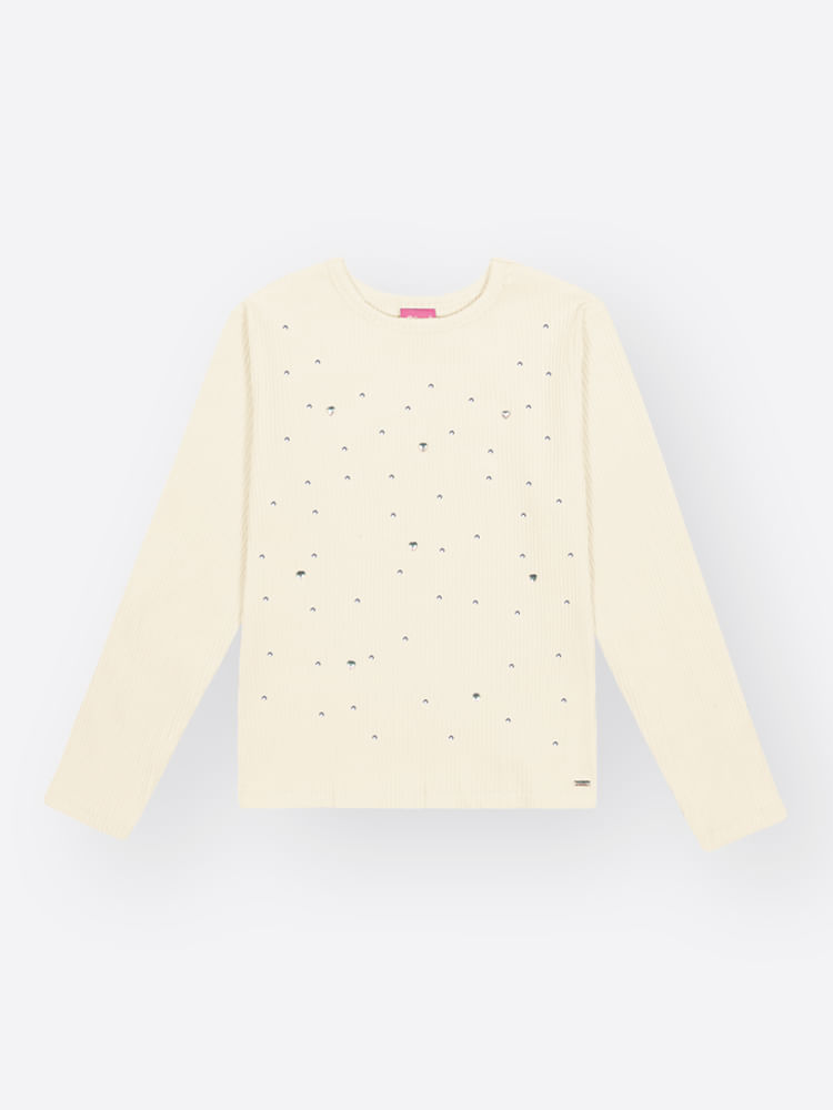 "A Blusa em Canelado Glow da Cinti é a peça perfeita para unir sofisticação e conforto no guarda-roupa das pequenas. Confeccionada em malha canelada de alta qualidade, ela apresenta uma textura suave e um brilho discreto que confere um toque moderno ao visual. O grande destaque do modelo é a delicada aplicação de strass na parte frontal, que cria um efeito iluminado e encantador, ideal para as meninas que amam brilhar. Com acabamento cuidadoso em friso no decote e uma charmosa plaquinha de metal prata na barra, esta blusa de manga longa oferece um ajuste confortável e flexível, atendendo desde o tamanho 02 ao 14.