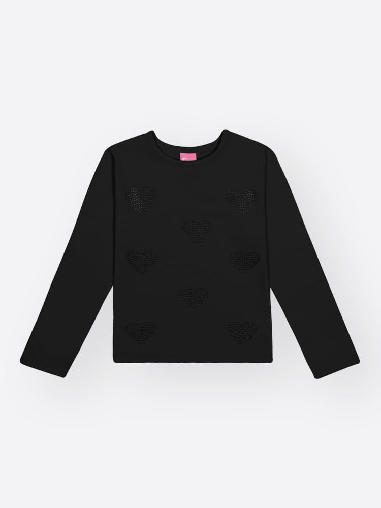 Tamanho:Blusa Menina Strass de Coração Mundo Cinti PRETO 02