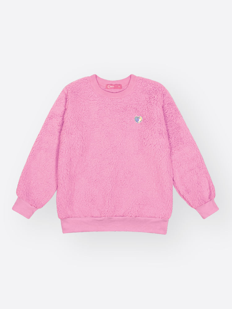 "Este blusão em pelo carneirinho da Cinti é a definição de aconchego e ternura para os dias mais fresquinhos, proporcionando uma sensação de abraço constante. Confeccionado em um tecido extremamente macio e peludinho, a peça se destaca pelo toque aveludado que as crianças adoram, mantendo-as aquecidas com leveza e muito conforto. O design é enriquecido com detalhes delicados, como a pequena etiqueta de coração aplicada no peito e o acabamento em punhos e barra talhados, que garantem um ajuste impecável e evitam a entrada de vento. Disponível em tons suaves e românticos como rosa, verde, natural e lilás, este blusão une a estética lúdica à praticidade necessária para o dia a dia infantil.
