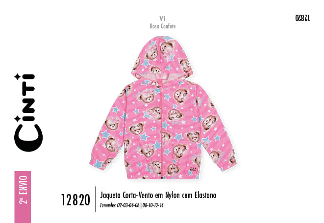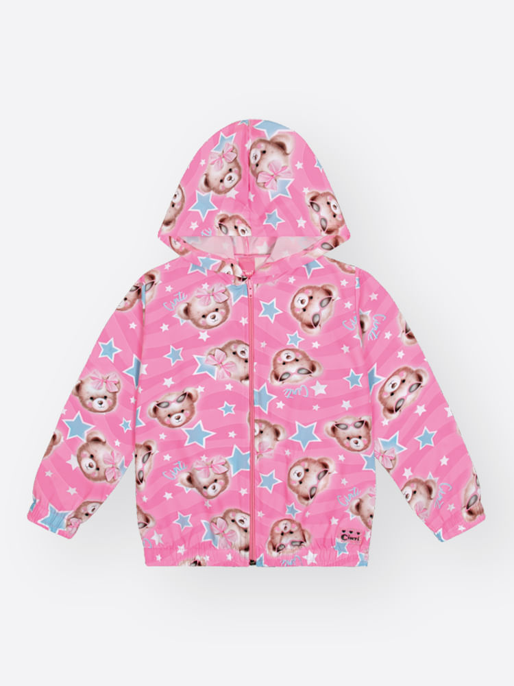 Esta jaqueta corta-vento em nylon com elastano da Cinti une alta funcionalidade a um visual lúdico e vibrante, sendo o item indispensável para proteger as crianças com leveza. A peça destaca-se pela estampa sublimada de ursinhos e estrelas em tons de rosa, que traz um ar divertido e moderno para as pequenas aventureiras. Com um design pensado para o movimento, ela conta com capuz protetor, fechamento frontal em zíper de nylon e acabamentos em elástico nos punhos e na barra, que garantem um ajuste seguro e impedem a passagem do vento durante as brincadeiras ao ar livre. Além disso, o toque de estilo final fica por conta da exclusiva etiqueta em glitter preta aplicada na base.