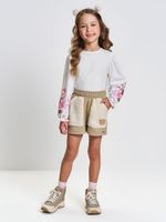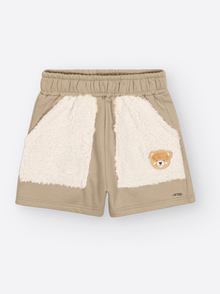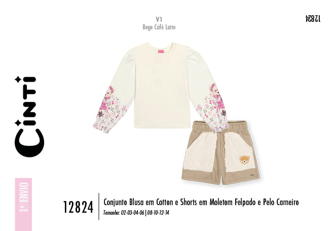 "Este conjunto da Cinti é a tradução perfeita de charme e conforto para as pequenas, unindo a leveza do cotton à maciez do moletom felpado. A blusa destaca-se pelas mangas longas levemente bufantes com franzido nos ombros, apresentando uma estampa sublimada encantadora de ursinha com detalhes em strass que adicionam um brilho delicado à peça. O acabamento em elástico nos punhos cria um efeito frufru romântico, harmonizando perfeitamente com o shorts em moletom, que traz bolsos frontais em pelo carneirinho para um toque sensorial aconchegante. Detalhes premium, como a plaquinha de metal dourada e o bordado de ursinho no bolso, reforçam a exclusividade e o cuidado em cada detalhe deste conjunto.