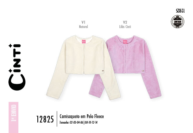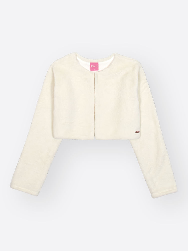 "O casaqueto em pelo fleece da Cinti é a peça ideal para adicionar uma camada de sofisticação e extrema maciez aos looks de inverno das meninas. Com um design clean e elegante, ele possui forro interno em meia malha apenas no corpo, garantindo conforto térmico sem prender os movimentos, e um fechamento discreto com botão escondido e aselha de elástico roliço. O toque de brilho fica por conta da delicada plaquinha de metal prata aplicada na barra, que reforça a qualidade e o cuidado em cada detalhe desta peça atemporal.