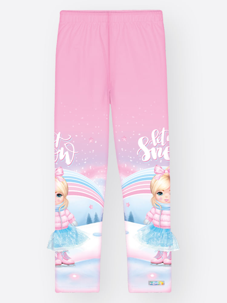 Perfeita para compor looks de inverno com um toque de fantasia, esta legging é extremamente versátil para o dia a dia ou passeios especiais. Para um visual completo e protegido, combine-a com um casaco puffer ou um blusão de pelo, destacando os detalhes em tule que dão um ar de princesa moderna à produção. Finalizada com uma etiqueta holográfica exclusiva na barra, esta peça une a funcionalidade necessária para os dias frios com a doçura do universo infantil, garantindo liberdade de movimento e muito charme em cada passo."
