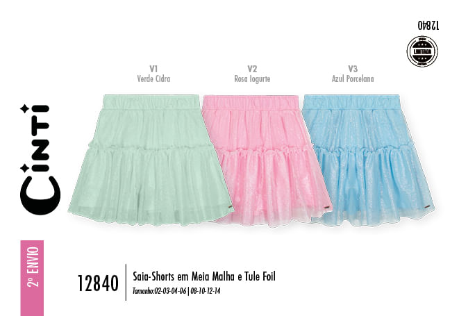 Tamanho:Saia-Short Infantil Menina em Tule Mundo Cinti AZ PORCELANA 02
