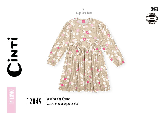 "O vestido infantil em cotton da Cinti é a escolha perfeita para quem busca um visual que une o encanto clássico ao conforto essencial da moda infantil. Confeccionado em malha de algodão de toque macio, este modelo se destaca pelo caimento fluido da saia com recorte franzido, proporcionando um movimento gracioso ideal para as pequenas. O design é enriquecido por uma estampa digital exclusiva que combina ursinhos e flores de forma delicada e lúdica, cobrindo toda a peça com suavidade. Detalhes sofisticados, como os laços aplicados na cintura e o leve franzido nos ombros, conferem um ar de vestido de princesa moderno, enquanto os punhos com elástico garantem um ajuste seguro e confortável durante todo o uso. É uma peça única que traduz doçura e elegância, mantendo a liberdade de movimentos para todas as descobertas do dia a dia.