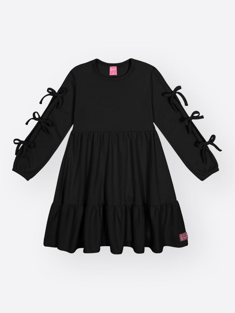 Este vestido é extremamente versátil e transita facilmente entre o estilo casual e o mais arrumado. Para os dias mais frescos de outono e inverno, combine-o com uma meia-calça grossa e botinhas de cano curto ou coturnos, criando um look fashionista e quentinho. Se a ideia for um passeio no shopping ou uma festa de aniversário, um sapatinho tipo boneca e uma tiara delicada completam o visual com doçura. Por ser uma peça lisa em tecido encorpado, ele dispensa o uso de muitos acessórios, deixando o destaque para os detalhes de laços nas mangas."