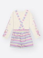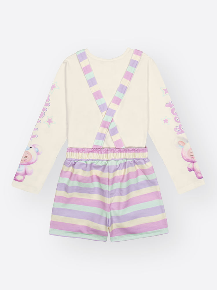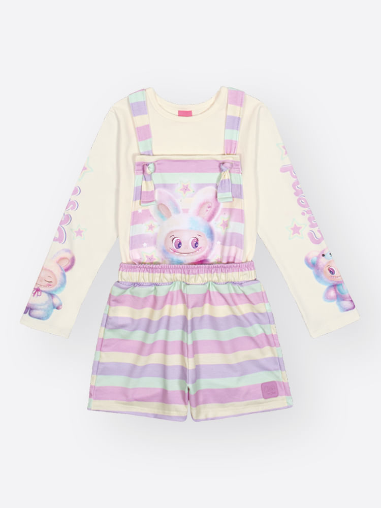 O diferencial lúdico deste modelo está na sua estampa de listras em tons suaves, que trazem um ar contemporâneo e alegre à peça. A blusa ganha um brilho especial com detalhes em strass e estampas localizadas nas mangas, criando um ponto de luz que encanta as pequenas fashionistas. Como um carinho extra, o conjunto conta com a exclusiva etiqueta com essência, que deixa a roupa com um perfume suave e uma sensação de frescor prolongada.