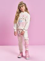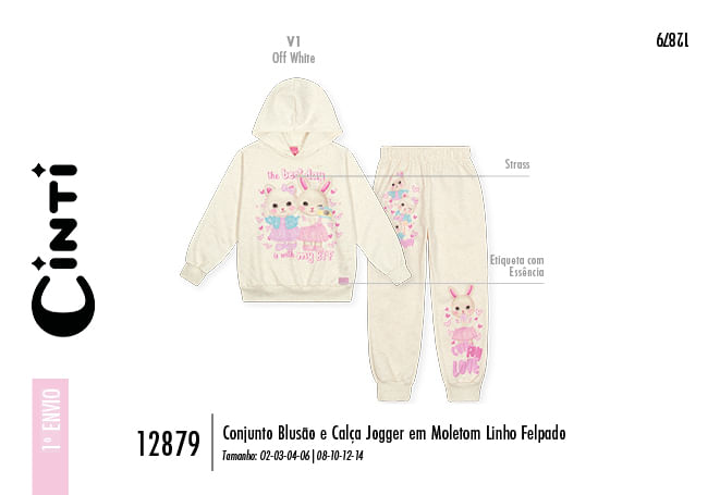 O diferencial deste conjunto está em seus detalhes delicados e lúdicos: a estampa frontal ganha vida com detalhes em strass, que adicionam um brilho sutil e encantador à peça, enquanto as estampas localizadas nas laterais da calça trazem um charme extra à composição. Para tornar a experiência ainda mais especial, o conjunto conta com a exclusiva etiqueta com essência lilás, que deixa a roupa com um perfume suave e uma sensação deliciosa de cuidado. É a escolha ideal para quem busca uma roupa de inverno infantil que combine a nobreza da aparência do linho com a maciez indispensável do moletom peluciado.