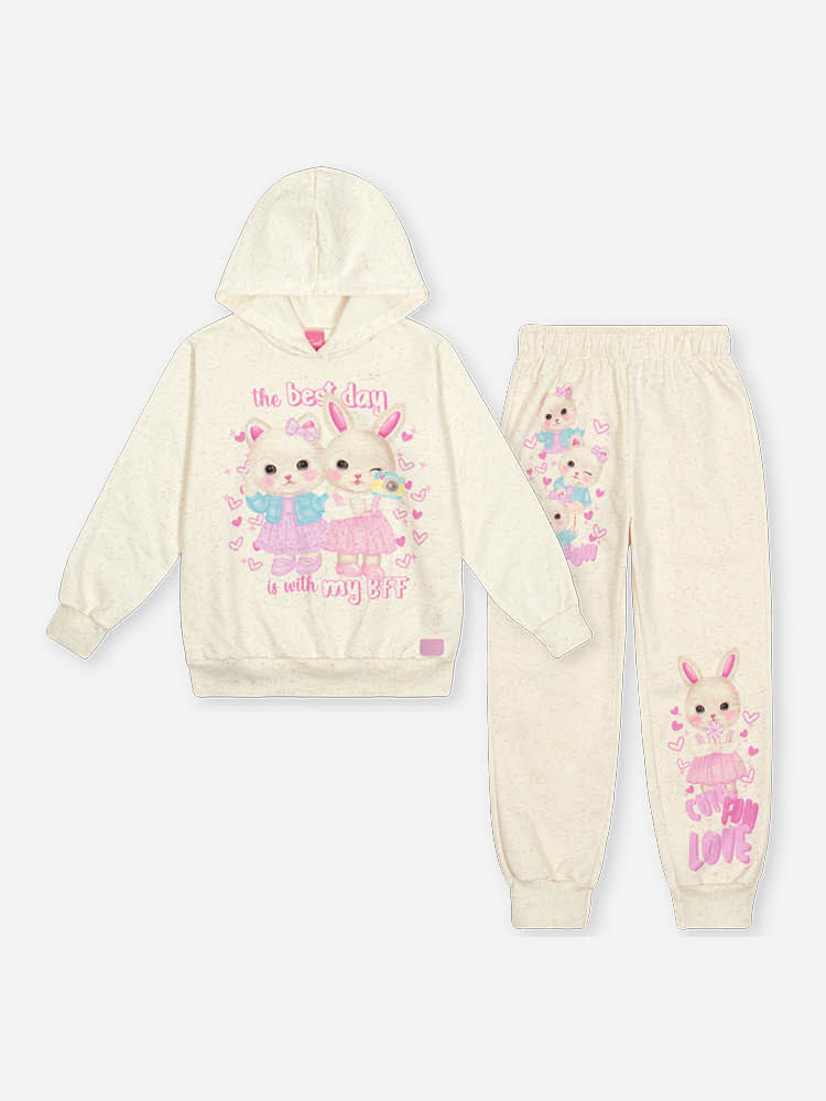 "Proporcione um inverno com toque natural e muito aconchego com o conjunto infantil feminino da Cinti, uma peça que une a elegância do moletom linho à funcionalidade do acabamento felpado. O blusão apresenta um design moderno com capuz funcional e acabamentos em ribana nos punhos e na barra, garantindo que o calor corporal seja mantido com suavidade. A calça no estilo jogger completa o look com praticidade, possuindo cós elástico rebatido para um ajuste perfeito e punhos que conferem um visual esportivo e atual.