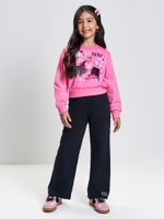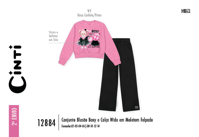 "Eleve o conforto e o estilo da sua pequena com este conjunto infantil feminino da Cinti, uma aposta certeira para o inverno 2026 que une a praticidade do comfy com detalhes encantadores. Confeccionado em moletom peluciado, o conjunto oferece um toque interno extremamente macio e aconchegante, ideal para manter o calor corporal nos dias mais frios. O blusão apresenta a moderna modelagem boxy, com caimento soltinho e atual, enquanto a calça segue a tendência wide leg, garantindo liberdade total de movimentos e um visual de blogueirinha super sofisticado.