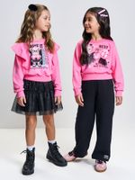 Este conjunto é a escolha perfeita para passeios no shopping, festinhas de aniversário ou eventos casuais onde a criança quer estar estilosa e bem aquecida. Por possuir uma calça wide leg, ele combina maravilhosamente bem com um tênis casual de sola alta ou um coturno moderno. Como o blusão já possui o detalhe em tule, não é necessário o uso de muitos acessórios; um simples laço de cabelo já completa o look. Em dias de frio intenso, combine com uma jaqueta puffer para um visual urbano e funcional."