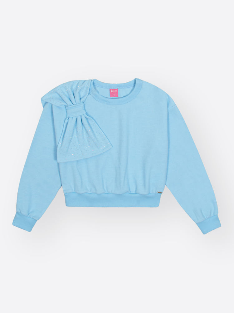 O diferencial lúdico e delicado desta peça está no charmoso laço talhado com aplicação de strass posicionado frontalmente, que adiciona um ponto de brilho e feminilidade à produção. Para elevar ainda mais o nível do conjunto, uma discreta plaquinha prata decorativa reforça a exclusividade da marca. Com cós elástico rebatido na calça, o conjunto é prático para vestir e ideal para meninas que não abrem mão do conforto enquanto exibem um look de blogueirinha antenado com as últimas novidades da moda internacional.