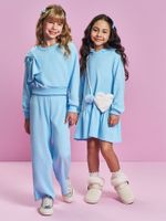 "O conjunto infantil feminino da Cinti é a escolha perfeita para quem busca um visual contemporâneo e cheio de estilo para a coleção de inverno 2026. Confeccionado em moletinho waffle, o conjunto se destaca pela sua textura quadriculada única, que além de ser visualmente sofisticada, oferece um toque extremamente macio e confortável para a pele das pequenas. O blusão apresenta a moderna modelagem boxy, com um comprimento mais curto e quadrado que é tendência absoluta, acompanhado de acabamentos em ribana nos punhos e na barra para um ajuste impecável. A calça segue a linha wide leg, com pernas amplas que garantem liberdade total de movimento e um caimento fluido e elegante.