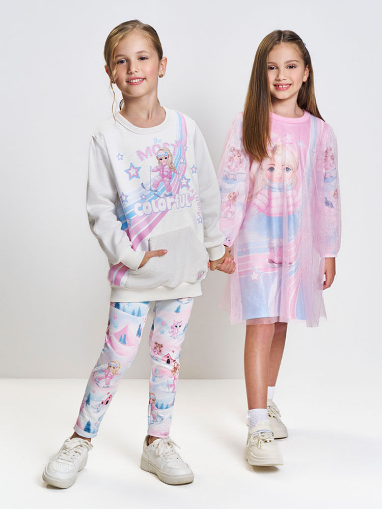 Para completar o look com praticidade, a calça legging é produzida em suplex peluciado, um material de alta elasticidade que se molda ao corpo e possui interior aveludado, ideal para manter as pernas aquecidas durante todas as brincadeiras. A legging apresenta uma charmosa estampa corrida (sublimação rolo) que harmoniza com os elementos lúdicos do blusão, além de possuir cós com elástico rebatido para um vestir seguro e confortável. Finalizado com a etiqueta Snow, este conjunto une a resistência necessária para o dia a dia infantil com a delicadeza de detalhes que transformam o look de inverno em algo especial.