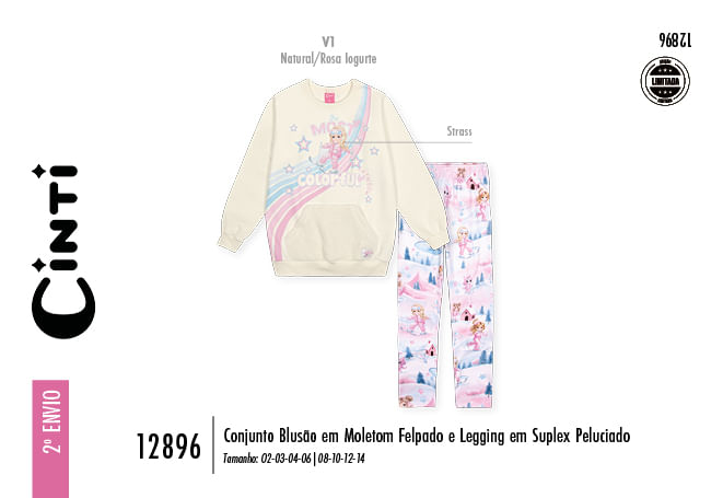 "O conjunto infantil feminino da Cinti é a combinação perfeita de estilo e proteção para enfrentar os dias frios com muito charme e liberdade. O blusão é confeccionado em moletom com felpa, garantindo um toque interno peluciado que retém o calor e oferece máximo conforto. O diferencial desta peça fica por conta do bolso em fleece, que traz uma textura macia e fofinha, além da estampa frontal delicada enriquecida com detalhes em strass, que adicionam um brilho mágico ao visual. Com acabamentos em ribana nos punhos e na barra, o blusão mantém um ajuste impecável, protegendo as pequenas das baixas temperaturas com suavidade.