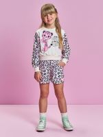 O shorts completa o duo com praticidade e doçura, possuindo cós elástico para facilitar o vestir e bolsos funcionais com acabamento em bainha. Assim como o blusão, o shorts conta com a estampa rotativa que mantém a unidade visual do conjunto, além de um diferencial sensorial exclusivo: a etiqueta de essência, que perfuma suavemente a peça e torna o uso ainda mais especial. Confeccionado em um tecido respirável e macio, este conjunto é a definição de uma moda infantil lúdica que não abre mão da liberdade de movimento e do bem-estar das meninas.