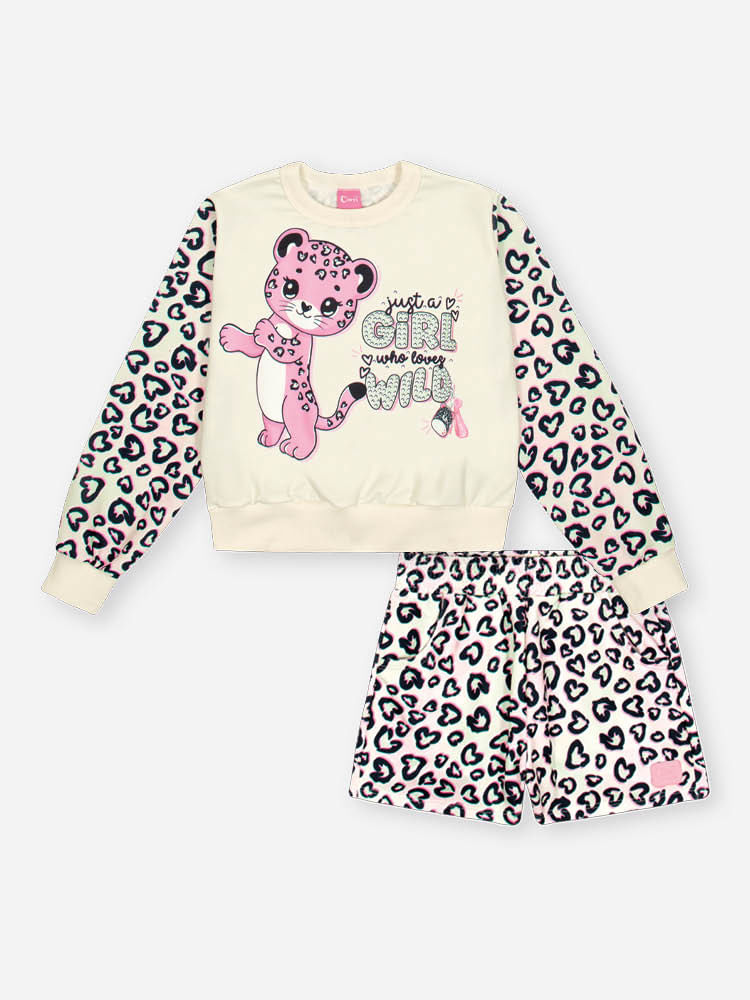 Este conjunto é a opção ideal para passeios ao ar livre, tardes de lazer no parque ou festinhas casuais em dias de temperatura amena. Por ser uma peça leve, ele combina perfeitamente com tênis de lona ou sandálias confortáveis. Nos momentos de brisa mais fresca, o blusão pode ser usado sozinho com uma legging, enquanto o shorts pode ser coordenado com regatas básicas, multiplicando as opções de looks no guarda-roupa. Finalize com um coque alto ou acessórios coloridos para realçar o espírito divertido e moderno da produção."