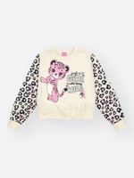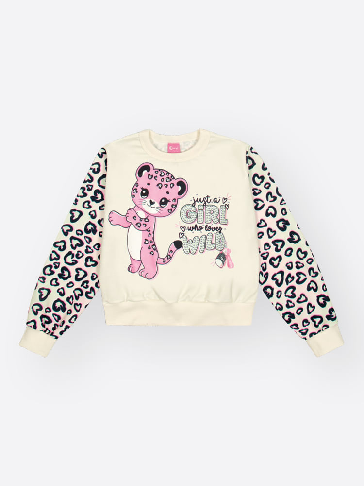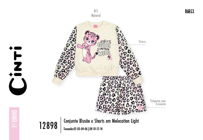 "Prepare sua pequena para os dias de meia-estação com o conjunto infantil feminino da Cinti, uma escolha que une a leveza do molecotton light ao estilo moderno da modelagem boxy. O blusão apresenta um caimento soltinho e atual, com acabamentos em ribana nos punhos e na barra que garantem um ajuste confortável e duradouro. O toque de encanto fica por conta da estampa frontal delicada enriquecida com detalhes em strass, que se complementa harmonicamente com a estampa corrida (sublimação rolo) presente nas mangas e nas costas, criando um visual dinâmico e cheio de personalidade.