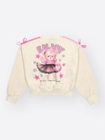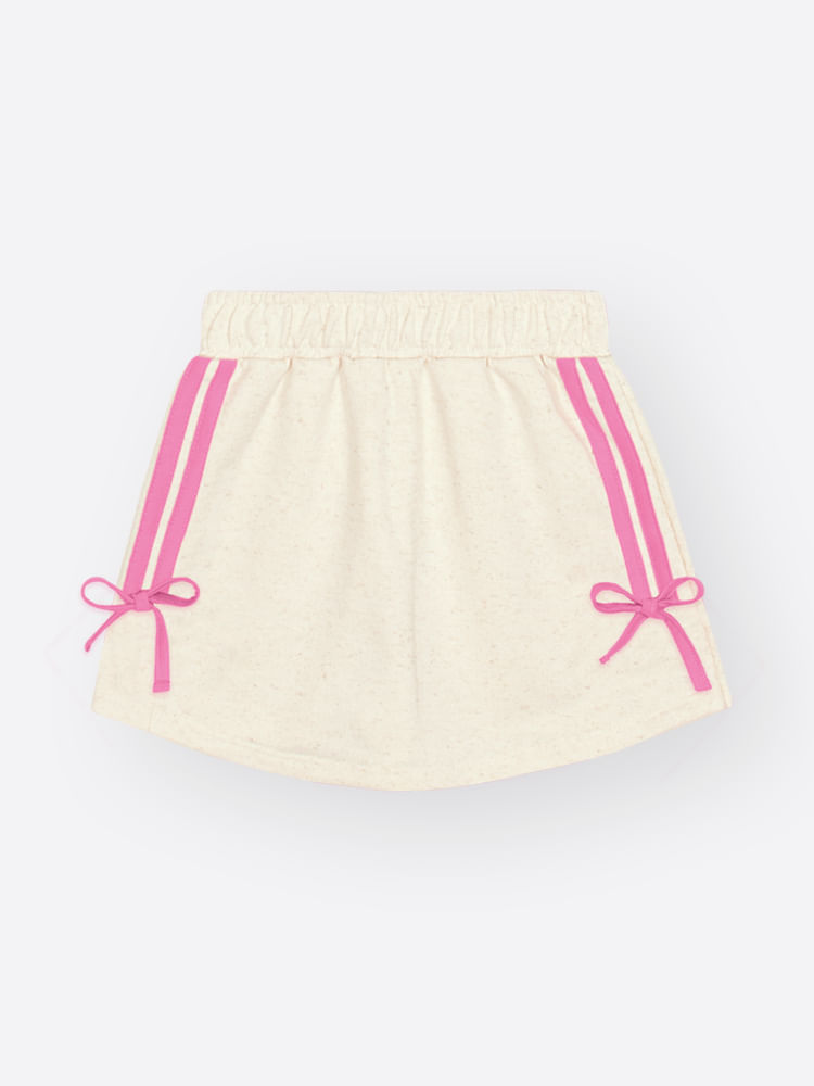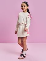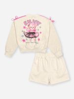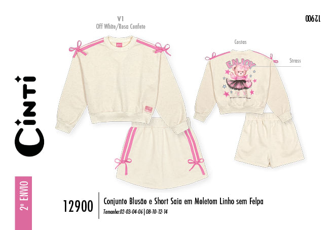 O charme da peça reside nos detalhes minuciosos: delicados laços aplicados nos ombros e nas laterais da saia, acompanhados por frisos contrastantes que elevam o design. Nas costas, uma estampa encantadora de ursinha bailarina ganha vida com o brilho sutil do strass, adicionando um toque lúdico e especial à produção. Este conjunto é ideal para passeios ao ar livre, festas casuais ou momentos de lazer, podendo ser combinado com tênis brancos ou sapatilhas para um look equilibrado. Com sua proposta versátil e acabamento premium, como a etiqueta em glitter, é a peça-chave para deixar as pequenas sempre estilosas e confortáveis."