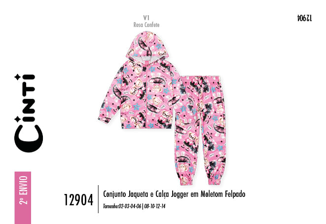 "O Conjunto de Agasalho Infantil Feminino da Cinti é a definição de estilo e praticidade para enfrentar as baixas temperaturas com muita fofura. Confeccionado em moletom felpado, este conjunto oferece um toque extremamente macio e o isolamento térmico necessário para manter as pequenas aquecidas durante todo o dia. A jaqueta possui capuz funcional e fechamento frontal por zíper de nylon, facilitando o vestir, enquanto a calça modelo jogger conta com elásticos no cós e nos punhos, garantindo um ajuste perfeito e total liberdade para brincar.
