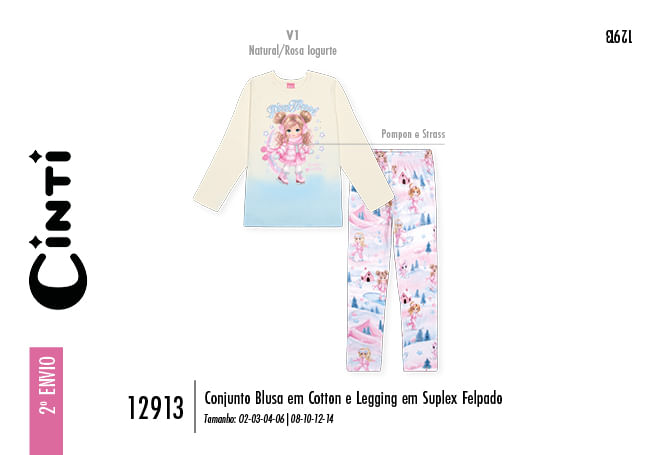 "Este encantador conjunto infantil feminino da Cinti, destaque da Coleção Inverno 2026, é a definição de doçura e conforto para as pequenas. O look é composto por uma blusa em cotton de toque macio e uma calça legging em suplex felpado, que garante pernas quentinhas e protegidas durante toda a estação. A blusa possui uma modelagem confortável com comprimento ideal para acompanhar a legging, destacando-se pela estampa frontal lúdica que traz elementos de inverno, como flocos de neve e corações, enriquecida com o brilho delicado do strass e o charme tátil de pompons aplicados. Uma etiqueta temática Snow na barra finaliza o design com um toque especial de inverno.