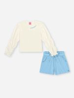 O short em moletinho waffle complementa o look com estilo e praticidade, apresentando uma modelagem clochard com cós elástico e uma charmosa rebarba na cintura. O detalhe final fica por conta da faixa para laço e da plaquinha de metal exclusiva, que reforçam o cuidado com cada detalhe da marca. Este conjunto é a escolha perfeita para passeios em família, festinhas ou momentos de lazer, oferecendo total liberdade de movimento. Para os dias mais frescos, combine-o com uma meia-calça grossa e botinhas, criando um look de inverno autêntico e cheio de personalidade."