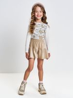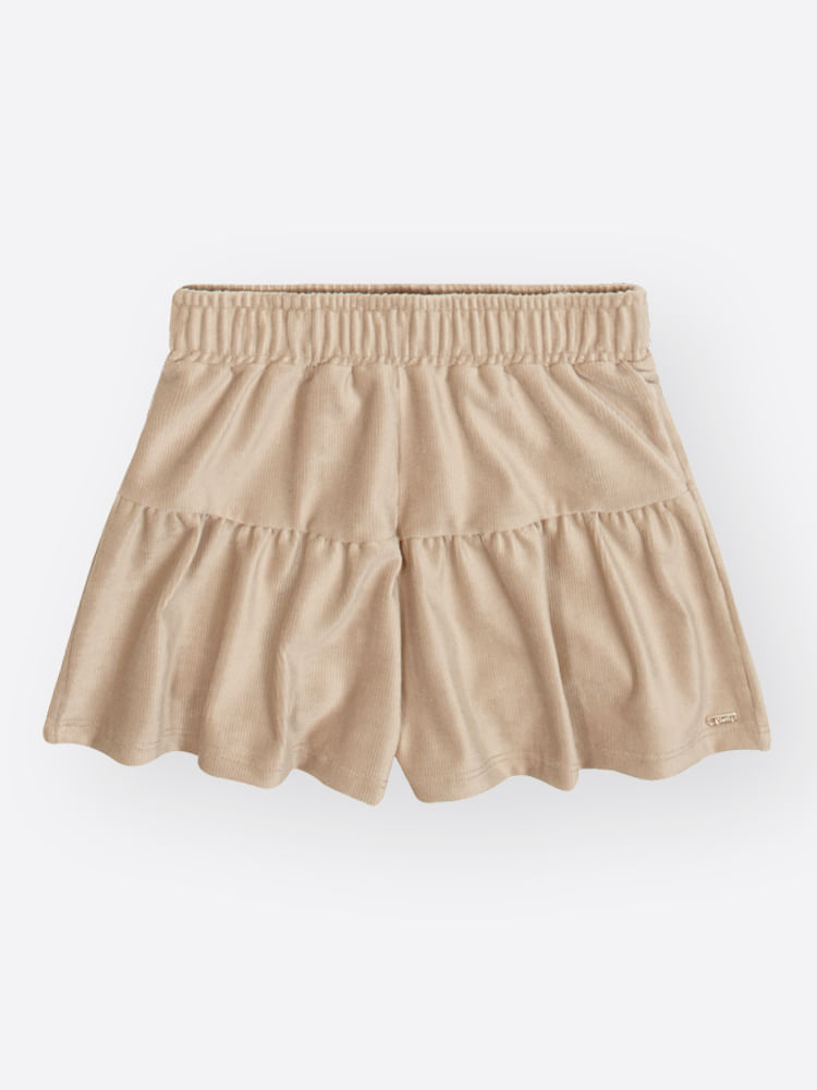 O design do shorts conta com um recorte franzido charmoso e cós elástico que garante um ajuste perfeito ao corpo da criança, permitindo total liberdade para brincar. O acabamento premium é reforçado pela exclusiva plaquinha de metal dourada, que adiciona um detalhe de luxo à peça. Este lookinho é ideal para ocasiões como festas de aniversário, passeios de final de semana ou eventos casuais que pedem um toque extra de estilo. Para uma combinação impecável de inverno, utilize o conjunto com uma meia-calça grossa e botinhas forradas, e finalize com um casaco de lã ou jaqueta estilosa para manter a pequena sempre aquecida e elegante."