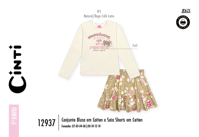 "Este encantador conjunto infantil feminino da Cinti, parte da Coleção Inverno 2026, é a escolha ideal para compor um visual romântico e confortável para as meninas. O look é composto por uma blusa em cotton biopolido, que oferece um toque extremamente macio e durável, e uma saia-shorts também em cotton, garantindo total liberdade de movimento. A blusa destaca-se por sua modelagem impecável e uma estampa frontal lúdica com a palavra Forever, que utiliza a técnica de estampa puff para criar um relevo moderno e divertido, perfeita para o universo infantil.